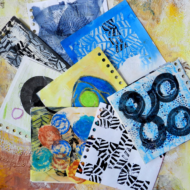 You can probably guess the theme of the sketchbook but I have to say that it was a really good decision to work the course again. Dionne's videos are always concise and encouraging and there is a clear path moving through the procedures for building the sketchbook which can be used with any future theme you may care to choose. My head is still full of ideas and possibilities for future work with circles and I have enough pages to make two sketchbooks and probably more on this theme. It was lovely to have the extra time to play and the more I played the more ideas came to me. Equally the Facebook page set up for all the participants to interact if they wished was invaluable. It was great to see some of the work others were doing and to get feedback both from Dionne, who was tireless in her support, and from the group.